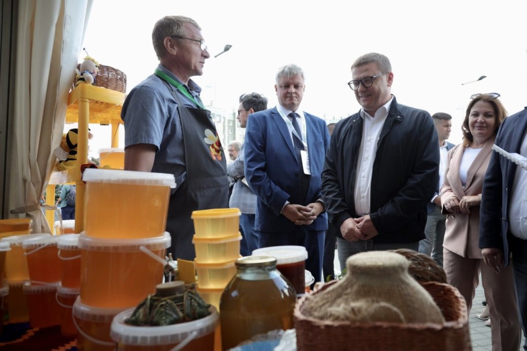 Губернатор Челябинской области обошёл экспозиции выставки, осмотрел продукцию как крупных холдингов («Союзпищепром», «Равис», «Ариант», «Макфа», «Ситно»), так и фермерских хозяйств.