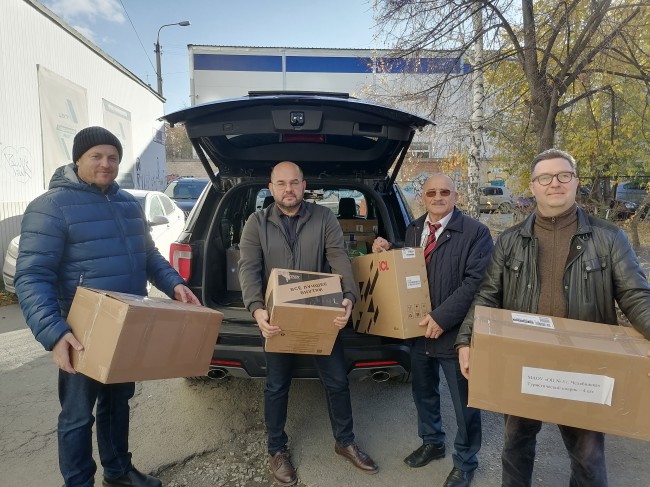 В отправке помощи приняли участие заместитель председателя Общественной палаты Челябинской области Евгений Андреев , председатель комиссии Общественной палаты региона по экономике, предпринимательству и вопросам нормативно-правового регулирования Алексей Ларин, член Общественной палаты региона Игорь Цыганов и председатель Общественной палаты Металлургического района города Челябинска Владимир Сыров.