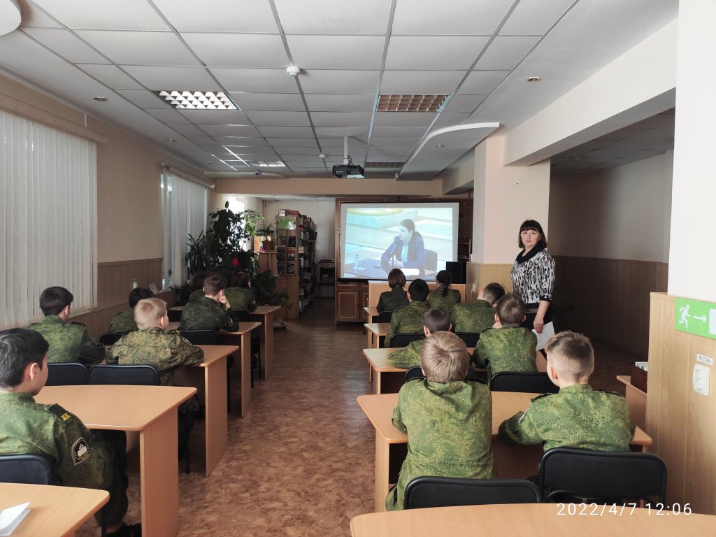 На просмотр конференции в удалённый читальный зал, нами были приглашены кадеты ученики 6 класса МБОУ СОШ №6.
