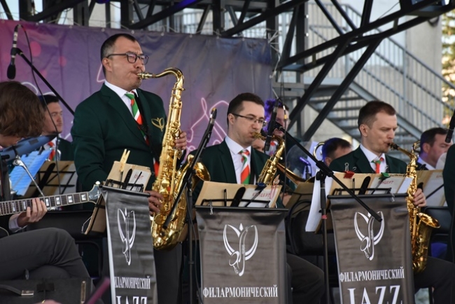 Музыкальный вечер горожанам подарили филармонический джаз-оркестр Республики Татарстан под управлением Сергея Васильева и певица Мариам Мерабова.