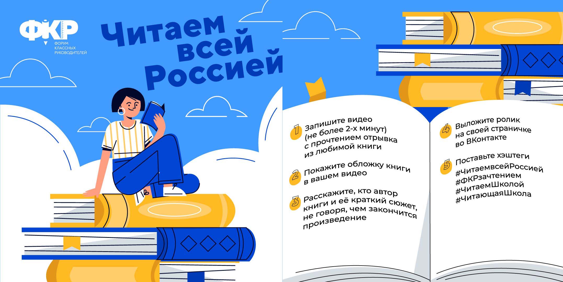 Присоединиться к проекту «Читаем всей Россией» могут учителя, ученики и родители школьников. Для этого необходимо записать короткий ролик с прочтением отрывка из любимого произведения и поделиться им на своей страничке во «ВКонтакте», отметив хештеги #ЧитаемвсейРоссией #ФКРзачтением #ЧитаемШколой #ЧитающаяШкола.