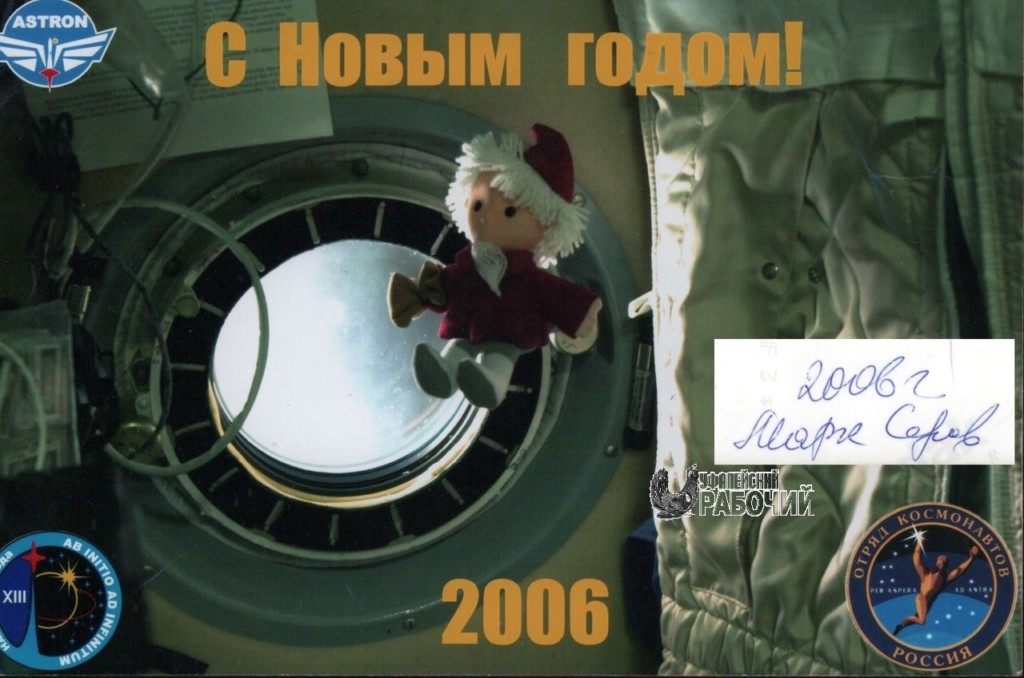 Поздравляя земляков с Новым 2006 годом, космонавт Марк Серов оставил на фото свой автограф.