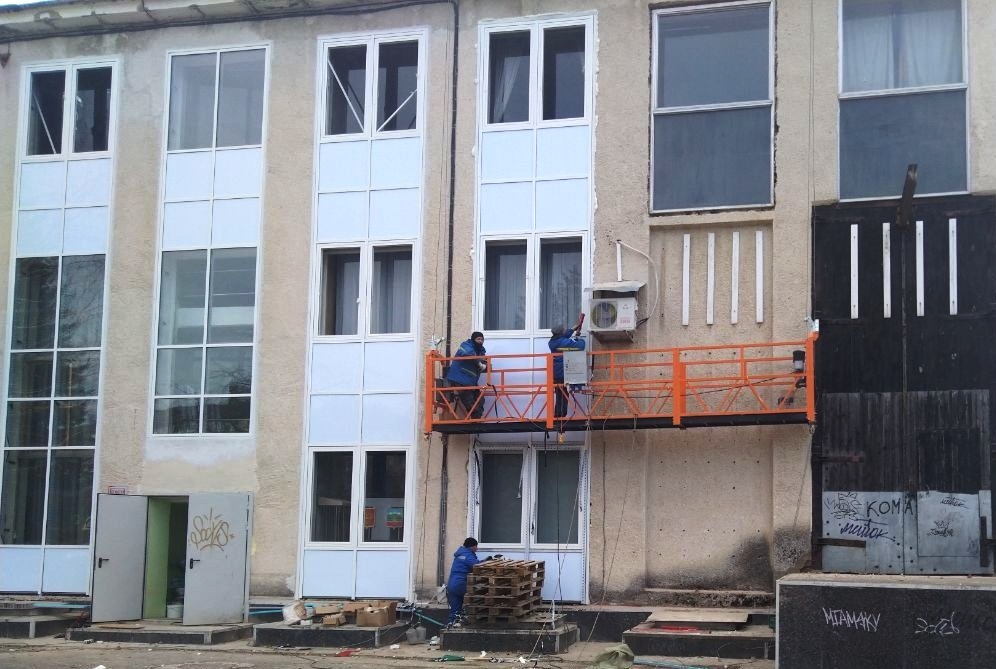 В здании Дворца культуры «Икар» идёт замена витражей и оконных блоков. Фото: