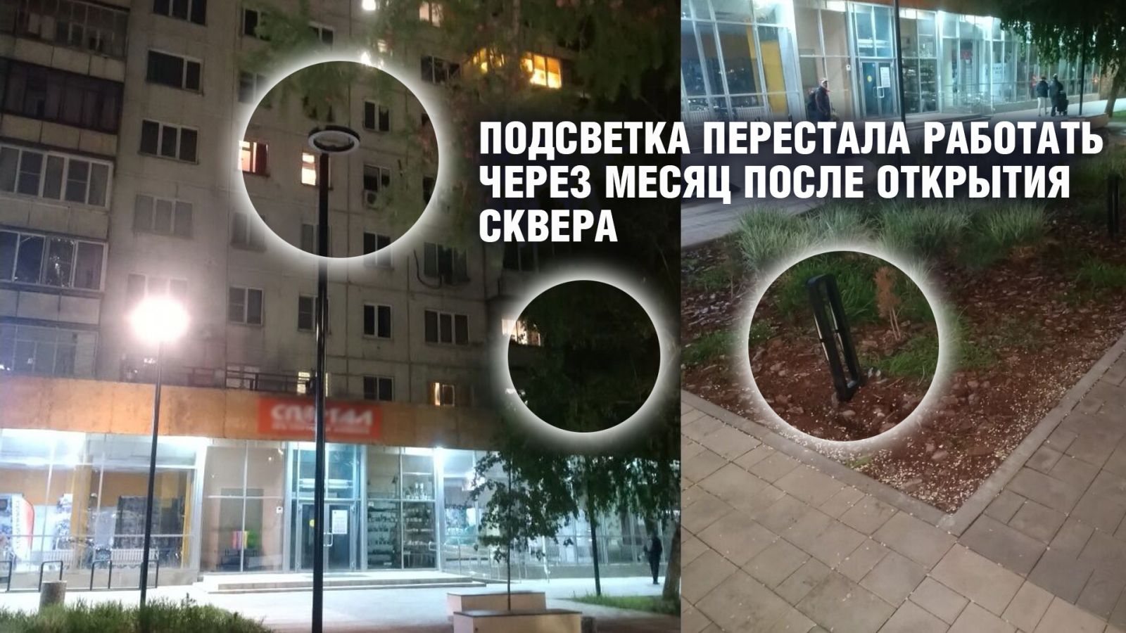 А вот уличные фонари на пешеходной зоне, которые как раз нужны прохожим, работали, по словам местных жителей, "через один" уже в июле 2022 года.