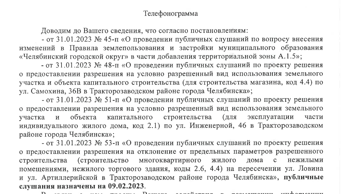 Подробная информация о проведении публичных слушаний, постановления и проекты, подлежащие рассмотрению на публичных слушаниях, размещены на официальном сайте Администрации города Челябинска - https://cheladmin.ru/ .