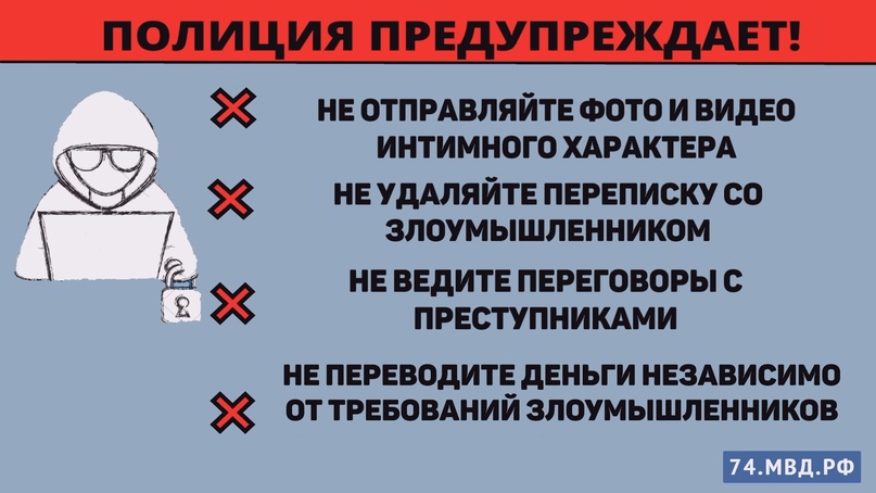 Сотрудники полиции напоминают о мерах безопасности в социальных сетях. Не стоит вести переписку на сугубо личные темы, отправлять кому бы то ни было фото или видео интимного характера.
