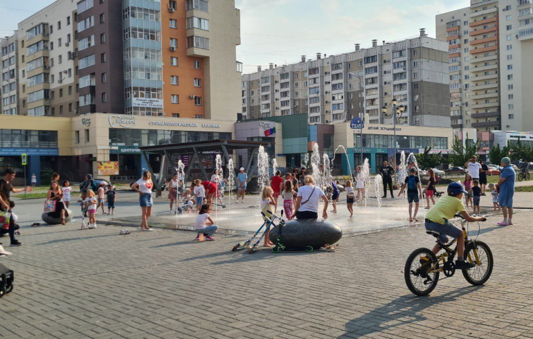 В сквере на улице Академика Королёва в Челябинске заработал сухой фонтан.