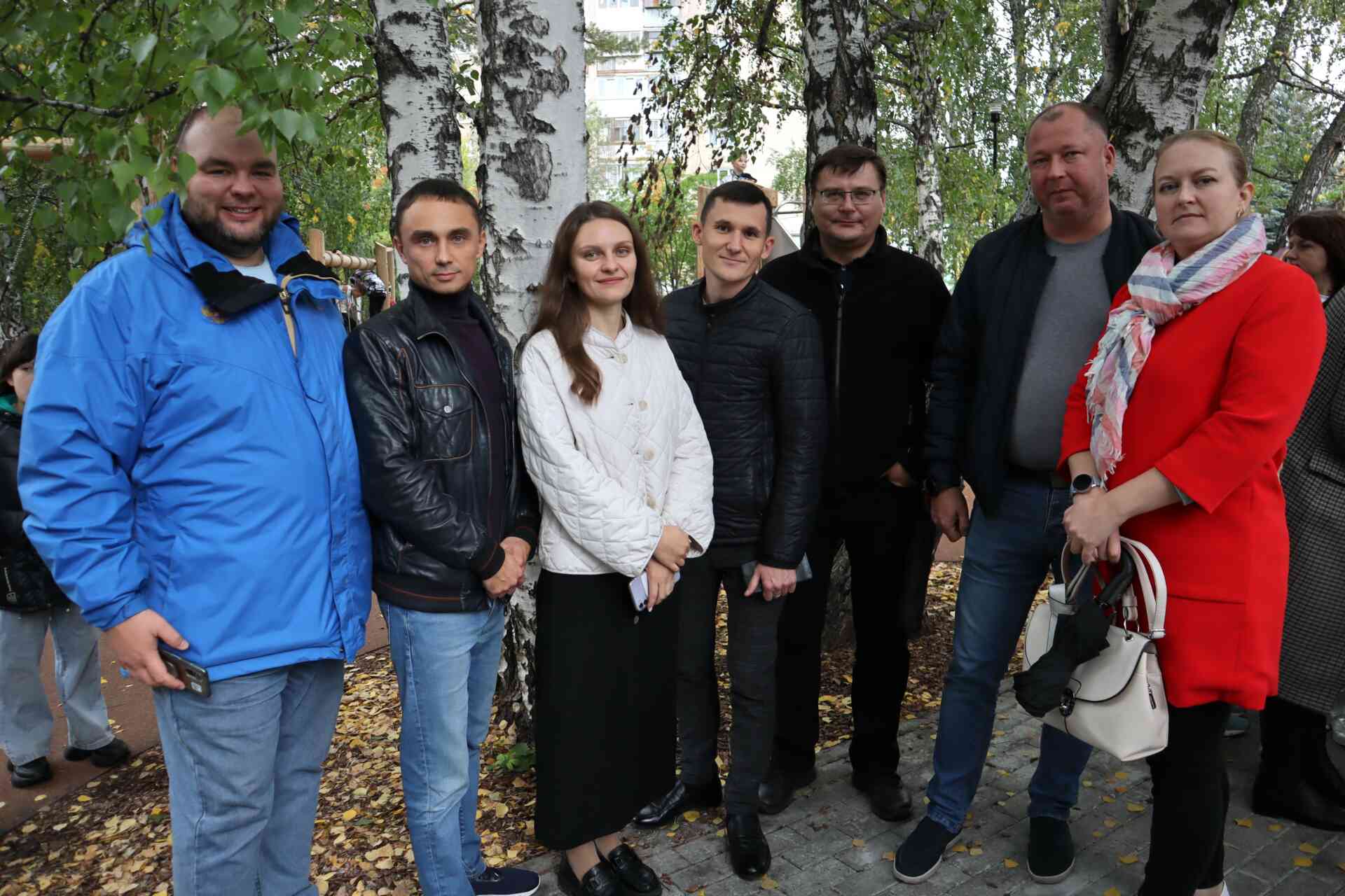 На торжественную церемонию открытия нового сквера пришли не только те, для кого он был обустроен, но и те, благодаря кому этот сквер появился — представители городской власти и подрядчика, депутаты городского собрания.