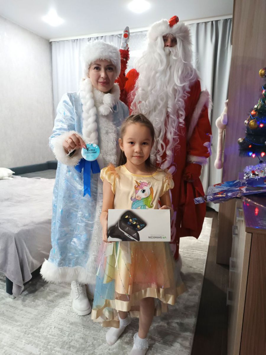 Детки уже получают заветные подарочки! Андрей Сергеевич Пульников приехал вместе с Дедом Морозом и Снегурочкой к десятилетнему Максимилиану, который загадал игровую консоль. Заместитель Председателя Собрания депутатов Марат Ягафаров подарил маленькой Теоне растущий стульчик.