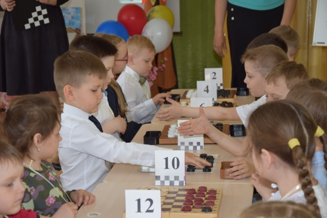 Детишки сражались в шашки