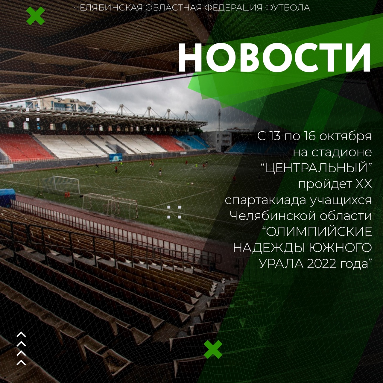 С 13 по 16 октября на стадионе “ЦЕНТРАЛЬНЫЙ” пройдет XX спартакиада учащихся Челябинской области “ОЛИМПИЙСКИЕ НАДЕЖДЫ ЮЖНОГО УРАЛА 2022 года”