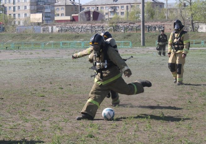 Пожарные из Троицка в полной боевой экипировке сыграли в футбол