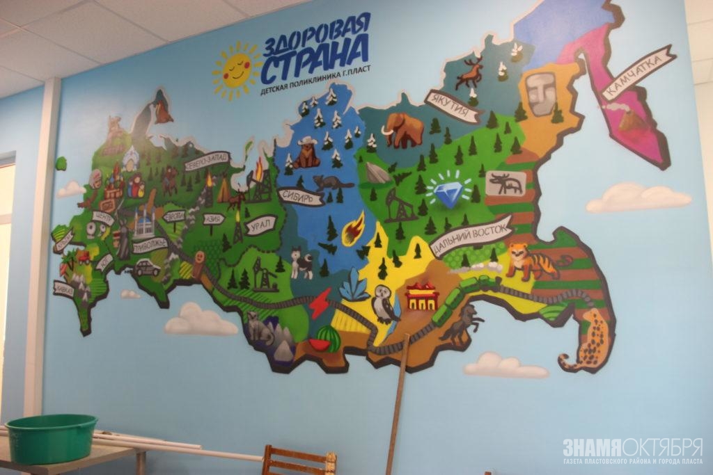 Что уже сделано? Отремонтирован и расписан фасад поликлиники. Готово к заселению отделение здорового ребенка. В нем расширен холл. Его стены расписаны художником Тимуром Абдуллаевым (тот, кто рисовал муралы на фасадах домов). Тематика росписи – наша Россия, с красочной картой страны, всеми географическими частями нашей большой родины. Здесь установят удобные яркие диванчики. В кабинетах проведен капитальный ремонт с заменой полов, окон, ремонтом стен, дверей. будет установлена новая мебель, выполненная в единой цветовой гамме. Новые санузлы с новой сантехникой, с возможностями для маломобильных групп населения.