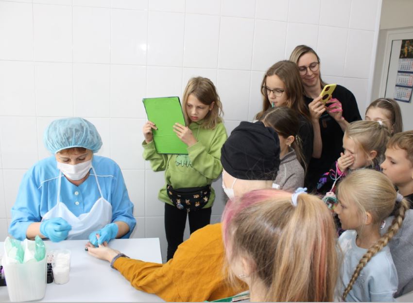 Пусть вас не удивляет юный возраст экскурсантов, ребята уже изучают строение кровеносной системы и с удовольствием отвечают на вопросы, о том, что такое эритроциты, как работает сердце и многие другие.