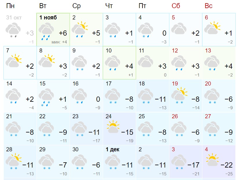 Ноябрьский прогноз погоды