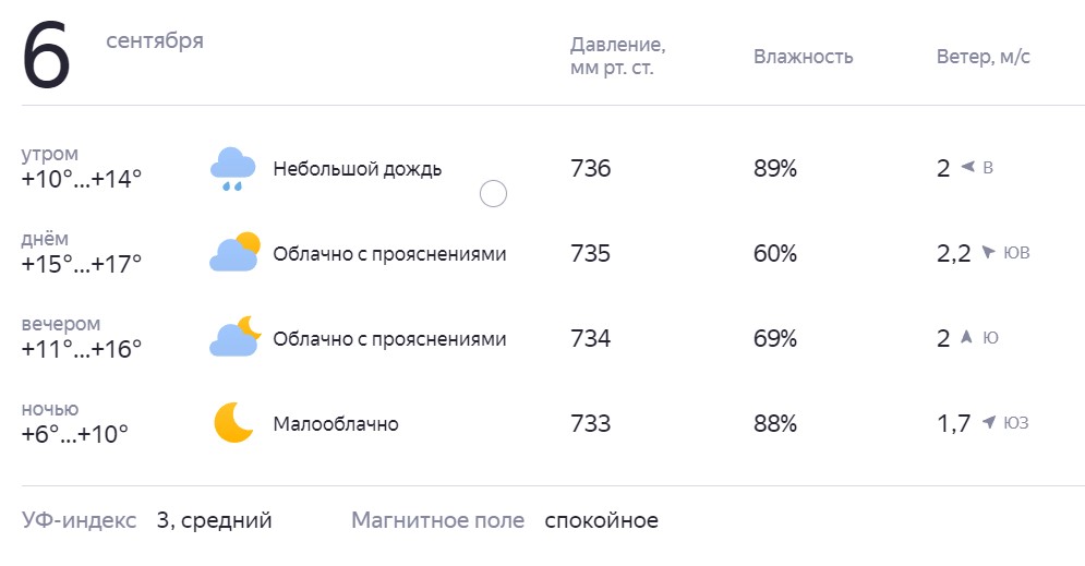Погода на 6 сентября
