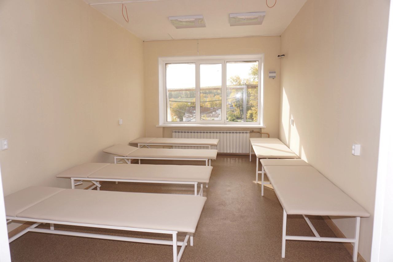 В здании полностью заменены системы водоснабжения и отопления, все оконные конструкции, дверные группы, освещение. На первом этаже врачебной амбулатории ведутся отделочные работы.