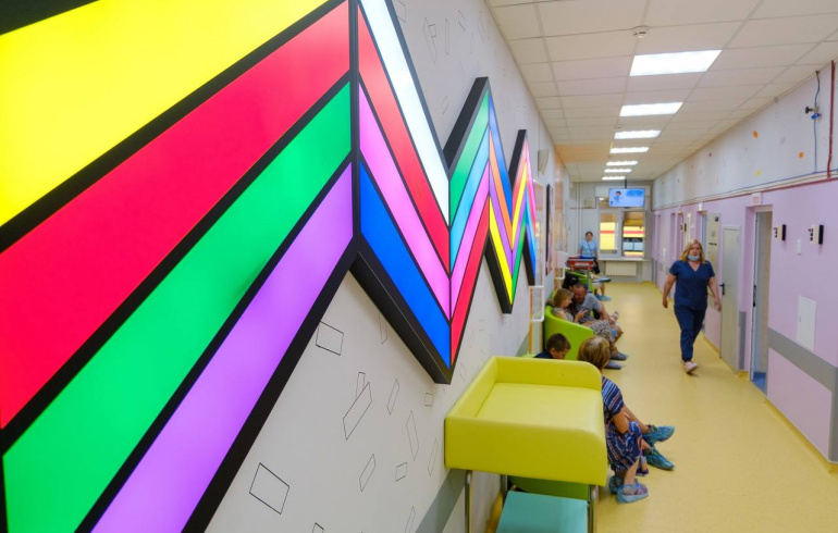 После ремонта в отделении стало красивее и комфортнее. Стены украсили цветными световыми панелями, а также картинами и другими элементами дизайнерского оформления.
