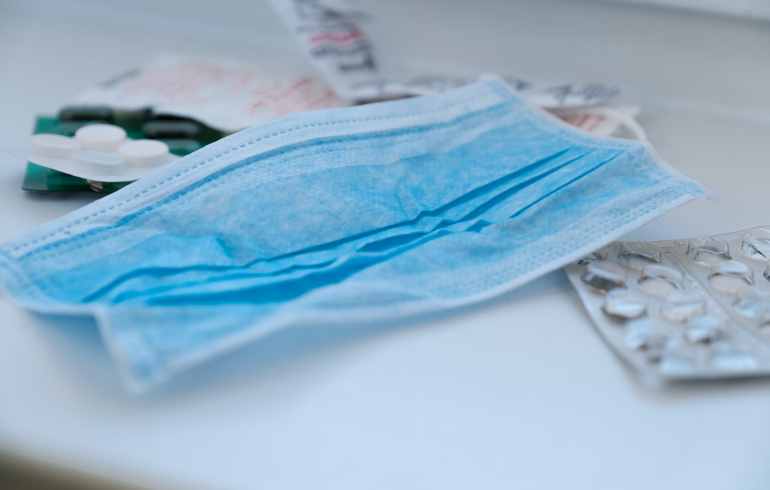 При нахождении в местах скопления людей стоит надевать маску и избегать общения с теми, у которых есть насморк, кашель и чиханье.