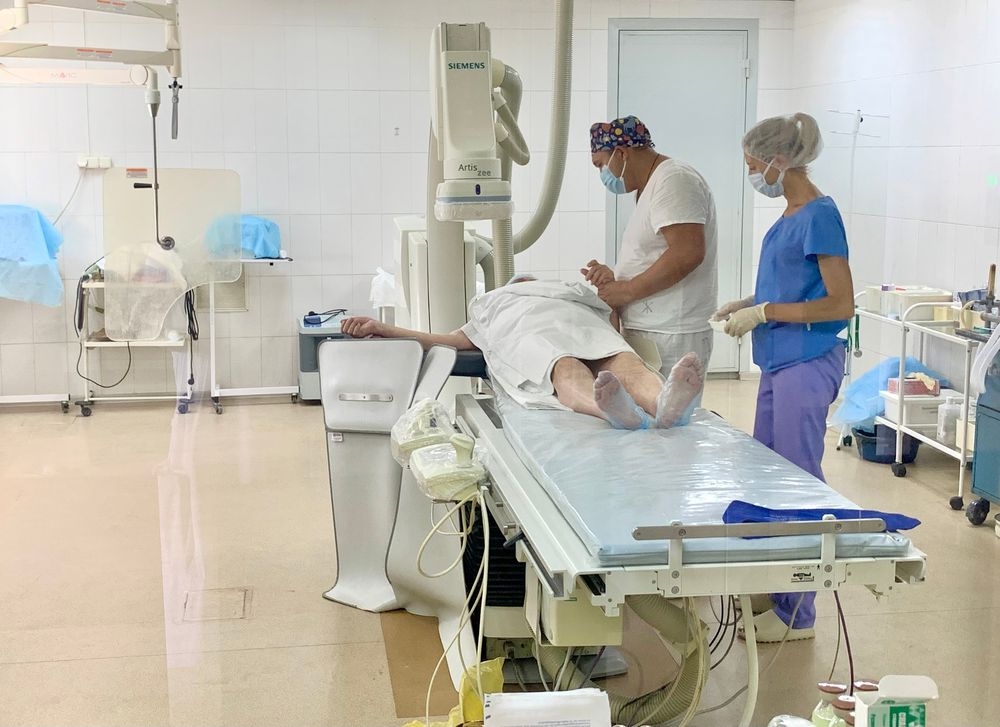 Но большая часть пациентов попадает в ангиографический кабинет экстренно. Привозят на скорой с острыми болями в сердце, в предынфарктном состоянии или с подозрением на инфаркт, часто уже не первый. Если во время диагностической короноангиографии подтверждается жизнеугрожающее сужение коронарных артерий, хирург принимает решение о дальнейших действиях. Как правило, это удаление тромбов и расширение сосудов баллоном с последующей установкой стента, то есть каркаса поврежденного сосуда. Чтобы помочь человеку действовать нужно быстро, говорит заведующий отделением кардиологии Иван Иванович Иванов.
